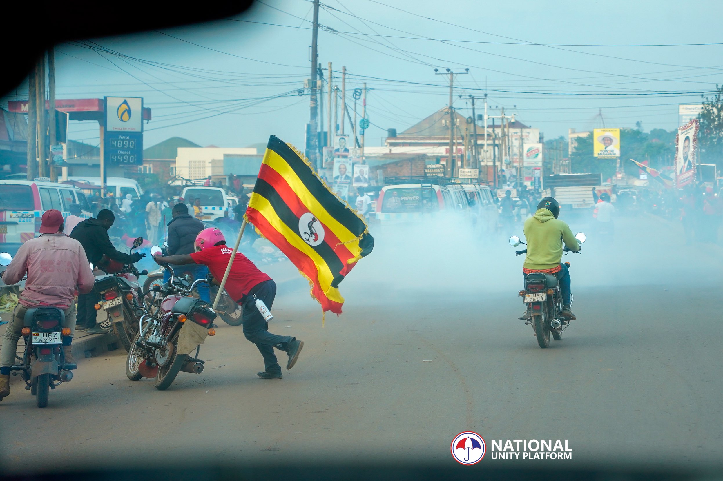 The national flags are flying at Namungoona playground in Lubaga North where we are holding our second and final presidential campaign rally. Our journey to this venue has been mired by violent scuffles with police brutally knocking down peaceful citizens who were accompanying us to the rally! #FreeUgandaNow #ANewUgandaNow #ProtestVote2026 #PeoplePowerOurPower